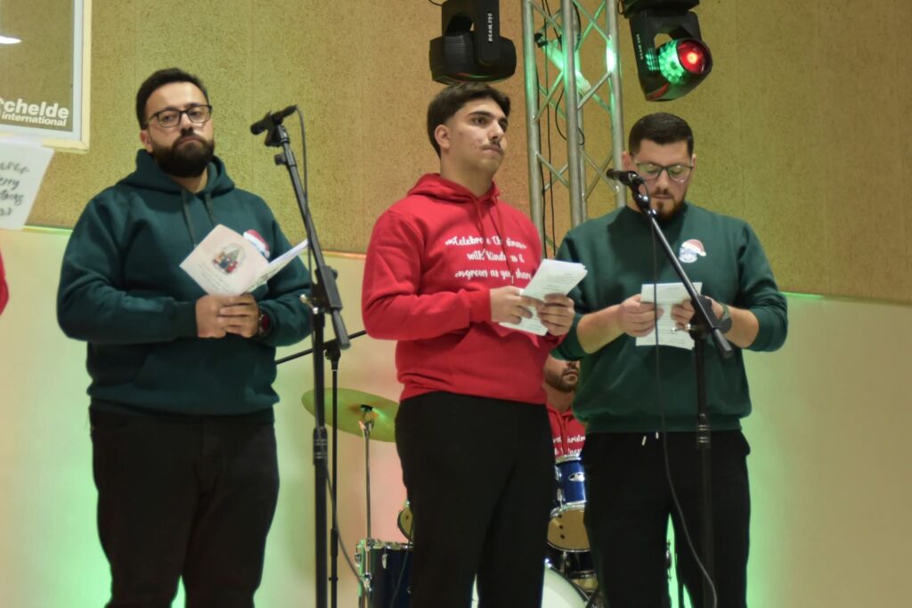 وقد قدّم كورال الهيئة الإدارية والتدريسية باقة من الترانيم الميلادية التي أضفت أجواء روحية دافئة وأسرّت قلوب الحاضرين. كما شارك طلبة قسم الروضة والأساسية الدنيا بعروضهم المبهجة التي منحت الفعالية حضورًا طفوليًا محببًا وألوانًا من الفرح.